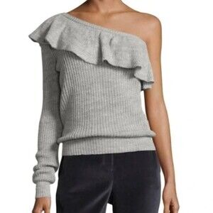 REBECCA TAYLOR Alpaca Wool Pullover Ruffle Sweater Gray One shoulder XS NWT