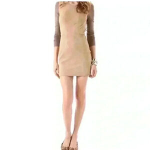 REBECCA TAYLOR BEIGE SUEDE & LYOCELL DRESS
