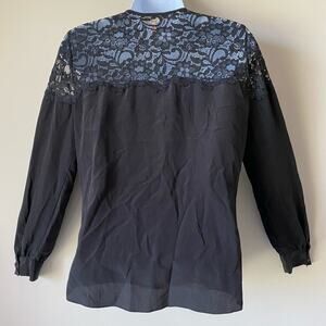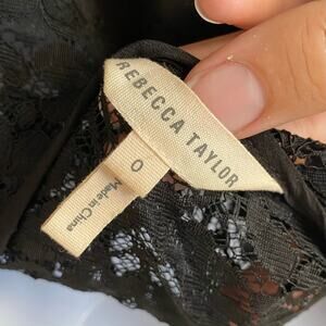 REBECCA TAYLOR Blouse Silk Lace Button Up Tie Black 0