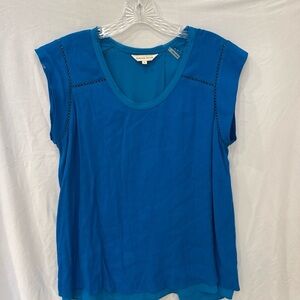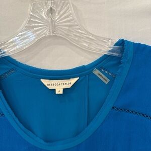 REBECCA TAYLOR Blue split back Top sz 6 Rayon poly spandex