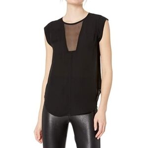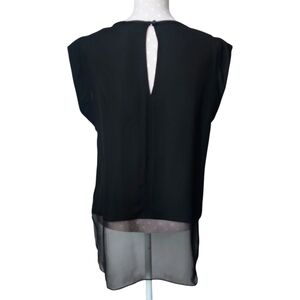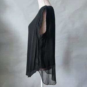 REBECCA TAYLOR Charlie Top 12 100% Silk Sheer Illusion Black Blouse NWT