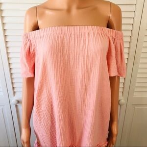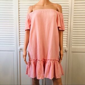 REBECCA TAYLOR Malibu Peach Cotton Gauze Off The Shoulder Dress Size 2