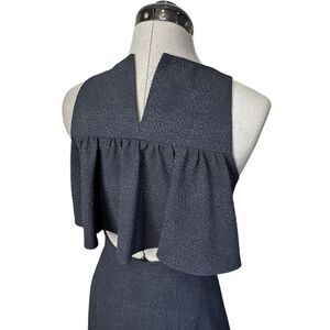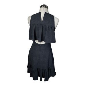 REBECCA TAYLOR Dress Sz 2 Textured Stretch Woven Ruffle Cut Out Back Black