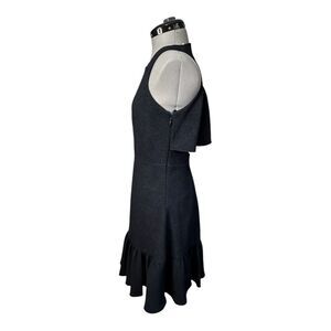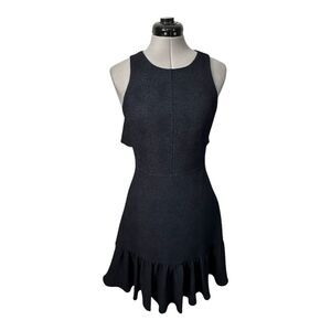 REBECCA TAYLOR Dress Sz 2 Textured Stretch Woven Ruffle Cut Out Back Black EUC Smoke Free Dog Friendly Home Luxury Designer Little Black Dress Vampy Classic Classy Cocktail Elegant
