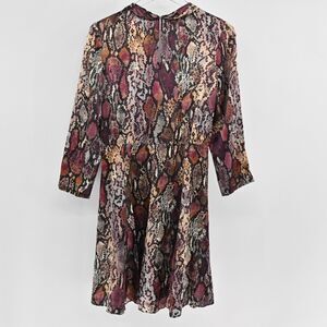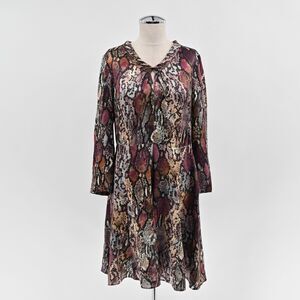 REBECCA TAYLOR Dress Womens Size 6 Silk Met Python Snake Print Purple Mob Wife