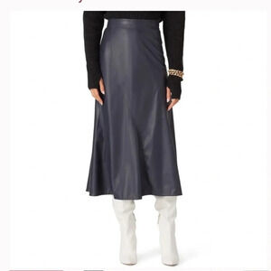 REBECCA TAYLOR FAUX LEATHER MIDI SKIRT