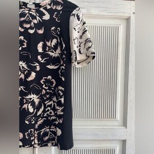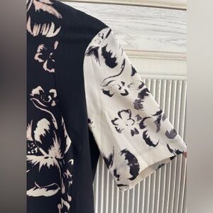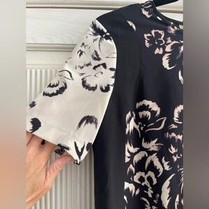 REBECCA TAYLOR Floral Black and White Silk Top, 0