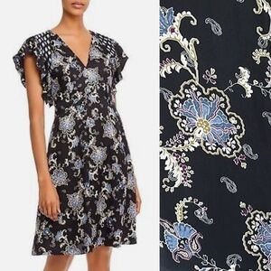 REBECCA TAYLOR Flutter Sleeve Silk Blend Dress Black Size 10