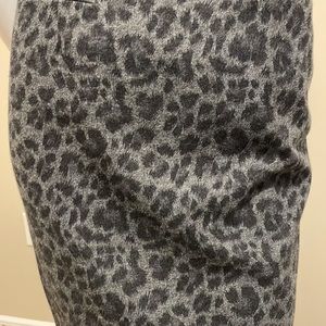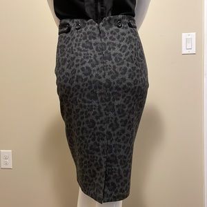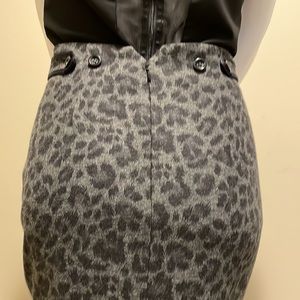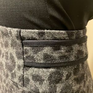 REBECCA TAYLOR GRAY AND BLACK ANIMAL PRINT HIGH WAISTED PENCIL SKIRT SIZE 8 Beautiful with such unique details. Fabric is wool and viscose and the skirt comes with the extra button still attached