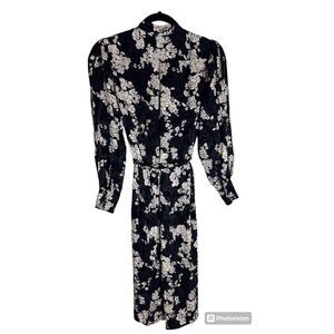 REBECCA TAYLOR Gabrielle Long-Sleeve Floral-Print Dress Size Small Black