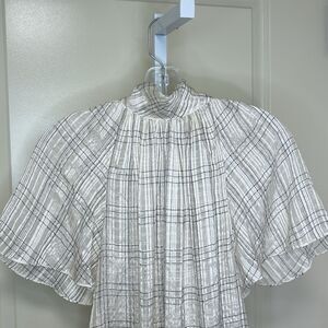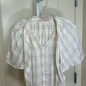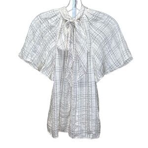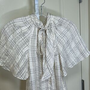 REBECCA TAYLOR, “Jules” Plaid Short-Sleeve Silk Blouse, Size 6.