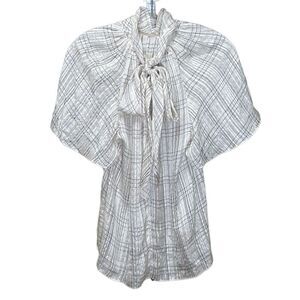 REBECCA TAYLOR - “Jules” Plaid Short-Sleeve Silk Blouse - Size 6, White, Black