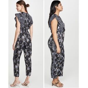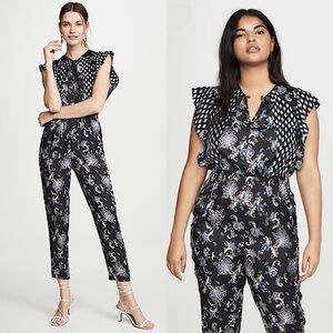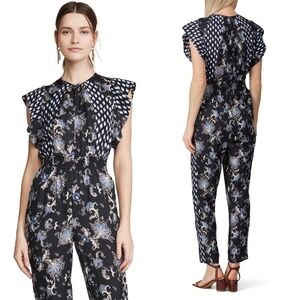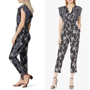 REBECCA TAYLOR Jumpsuit Boho Floral Paisley Silk Smocked Waist Short Sleeves 14