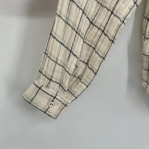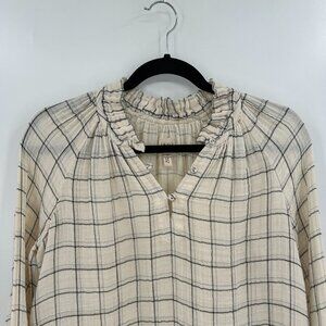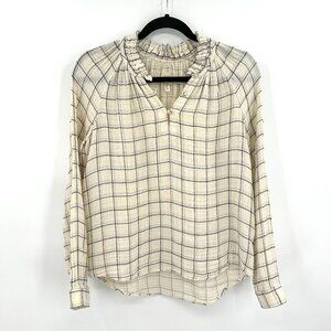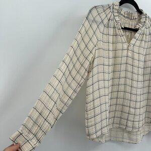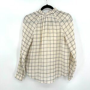 REBECCA TAYLOR La Vie *Flawed Ivory Black Silver Metallic Plaid Boxy Top Size XS