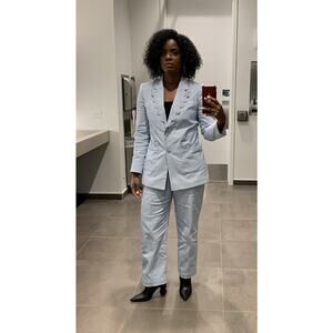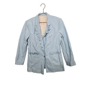 REBECCA TAYLOR Light Blue 70s Rickrack Trim Double Breasted Slub Jacket Blazer 8