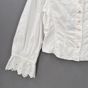 REBECCA TAYLOR Long Sleeve Eyelet Pop Top Womens 8 Milk White Romantic Boho