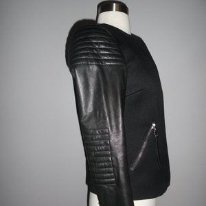 REBECCA TAYLOR Moto Biker Leather Quilted Twill Quilt Oversized Jacket 2 XS