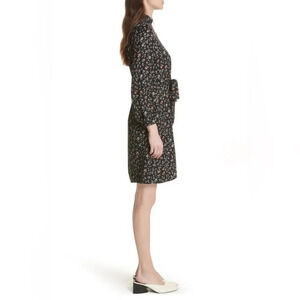 REBECCA TAYLOR Floral Vine Long Sleeve Silk Dress in with Pockets Black