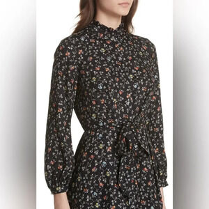 REBECCA TAYLOR NWOT Floral Vine Long Sleeve Silk Dress in Black
