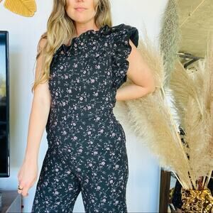 REBECCA TAYLOR Floral Navy Ruffle Crop Jumpsuit 4