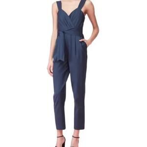 REBECCA TAYLOR Pleated Crop Ottoman Jumpsuit Size 6 Tide Blue Dressy Sweetheart