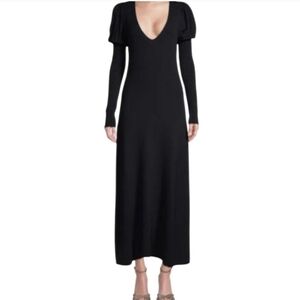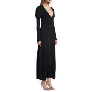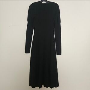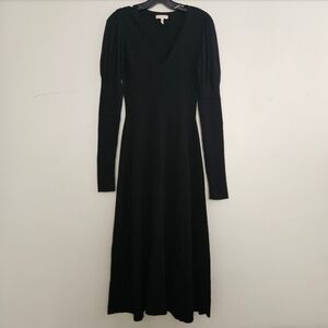 REBECCA TAYLOR RIBBED BLACK LONG PUFF SLEEVE V NECK DRESS WOMEN'S SIZE XSMALL