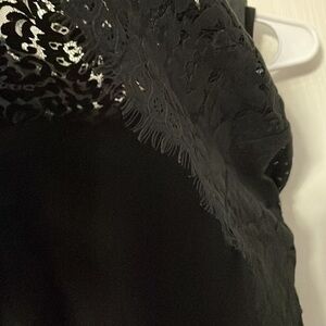 Top has a lace overlay. Some fringe at bottom of lace fraying or pulling.