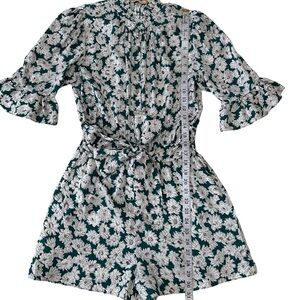 REBECCA TAYLOR Serene Floral Print Romper Elbow Sleeve SZ 4 Green White NWOT