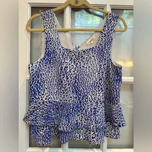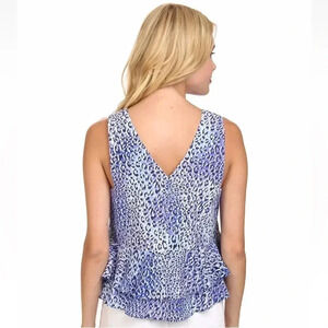 REBECCA TAYLOR Silk Leo Fever Blue Crush Leopard Peplum Ruffle Blouse Size 6