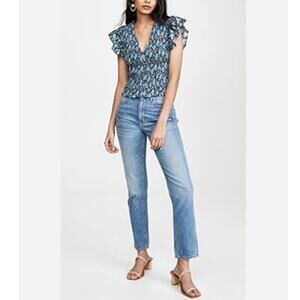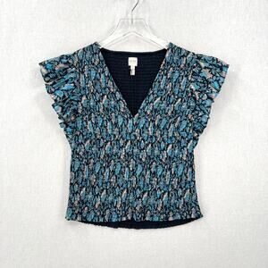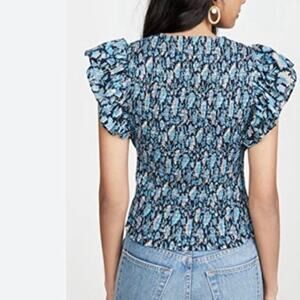 REBECCA TAYLOR Sleeveless Bette Fleur Top Womens Large Smocked V-neck Floral NEW