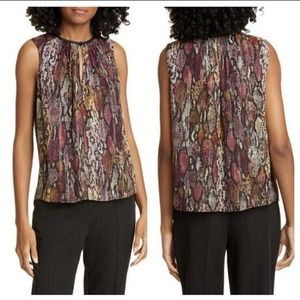 REBECCA TAYLOR Sleeveless Snake-Print Metallic Top $145 Women Size 2