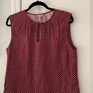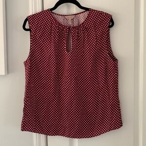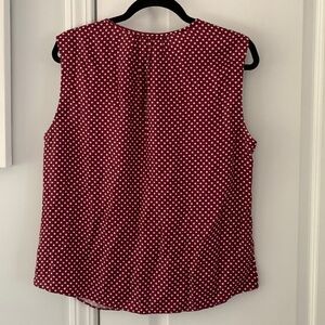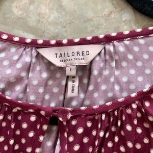 REBECCA TAYLOR Tailored Polka dot maroon tank top blouse size L key hole silk