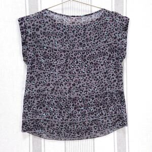 REBECCA TAYLOR Top Silk Cheetah Print Sz 4 Grey Animal Print Sleeveless Blouse