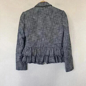 REBECCA TAYLOR Woman Blazer Size 2 Tweed cropped ruffle jacket Classic