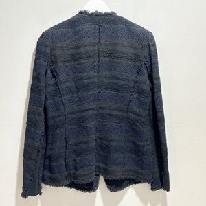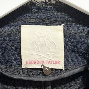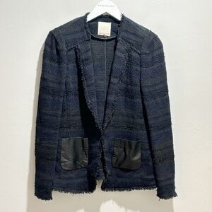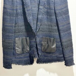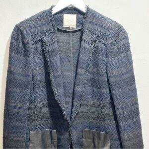 REBECCA TAYLOR Women’s Blue Black Tweed Frayed Hem Leather Pocket Blazer Size 8