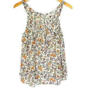 REBECCA TAYLOR Women’s Silk Floral Print Ruffle front Braided Tank Top