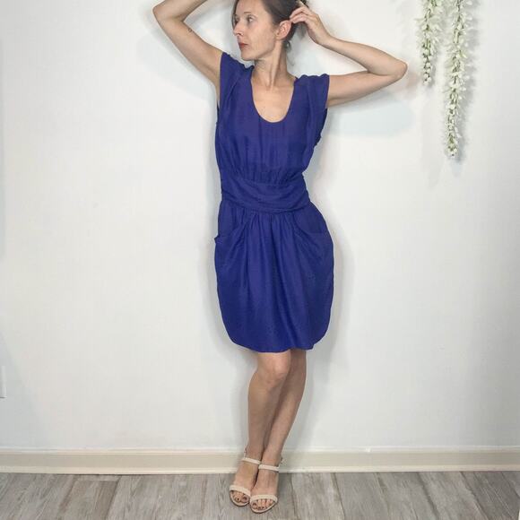 Rebecca Taylor scoop neck cap sleeve dress royal blue