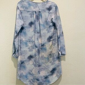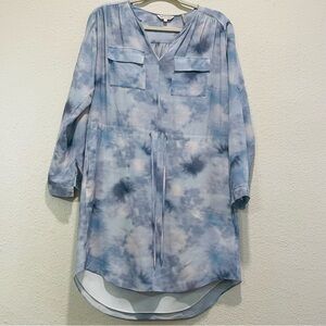 REBECCA TAYLOR tie dye Haze print silk dress sz 2 Roll sleeves drawstring.