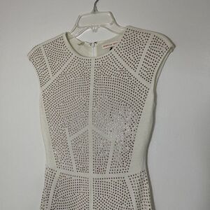 REBECCA TAYLOR Nailhead Rose gold Pink Studded Ivory Sheath Dress Sz Small $495
