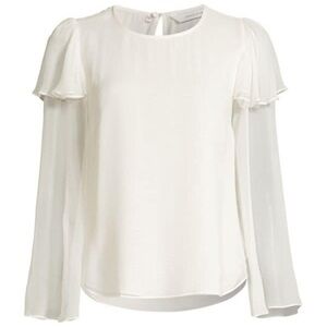 Layered with chiffon ruffles, Rebecca Taylor's charming blouse features mesh long sleeves with a short-sleeve overlay. This relaxed top evokes a luxurious design from its silk craftmanship.