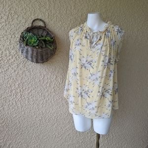 REBECCA TAYLORSleeveless Lemon Rose-Print Silk Blouse size 10