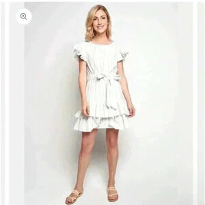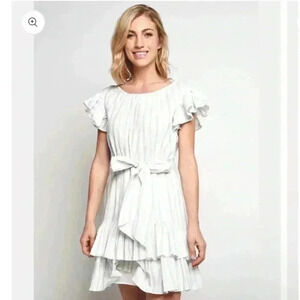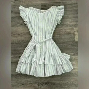 REBECCA TAYLOR Sleeveless Stripe Ruffle Dress Size 8