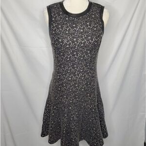 REBECCA TAYLOR dress sleeveless lace bond black leather trim 6