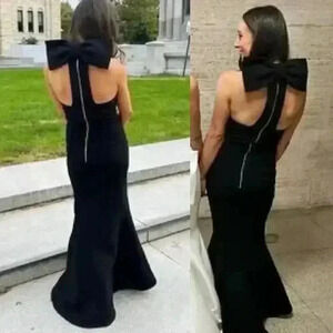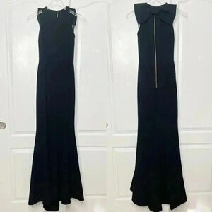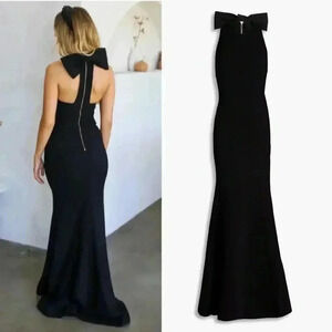REBECCA VALLANCE Love Bow-Embellished Black Crepe Maxi Gown Dress Size US 0