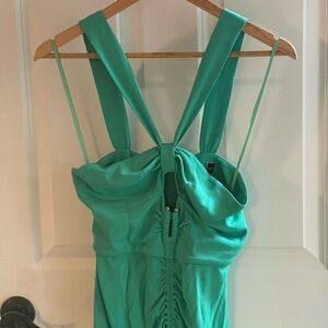 REBECCA VALLANCE Riccardo Ruched Cutout Jersey Midi Dress {$590} Turquoise Sz 2