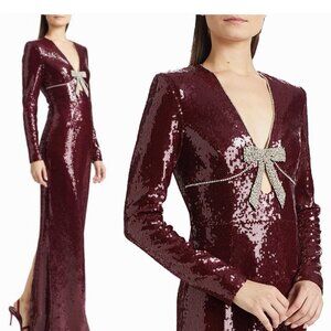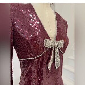 REBECCA VALLANCE x Nicky Hilton Zelda Gown Burgundy Sequined Maxi Bow Dress