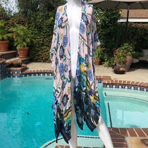 Dreamy blooms twine across a flowy, lightweight ruana perfect for breezy days.