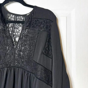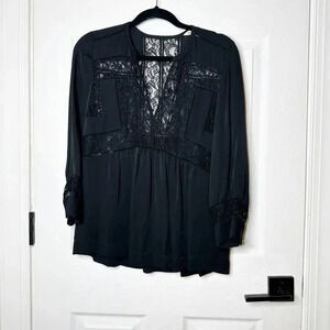 REBECCA TAYLOR 100% Silk Black Lace Blouse Size 2 Dark Academia
