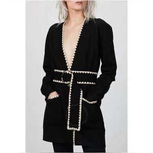 REBECCA TAYLOR Belted Stitched Wool-Blend Cardigan size M