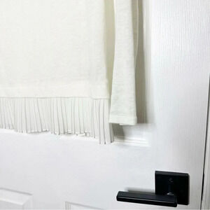 Gorgeous off white long sleeve top with lace panels and pleated hem in lightweight linen.